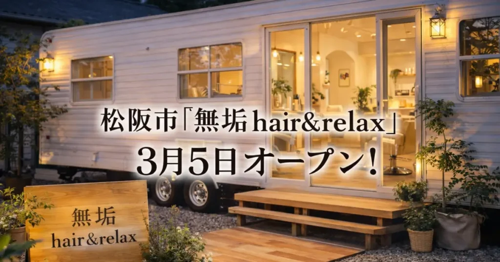 松阪市に新しい美容院 『無垢 hair&relax』 が2026年3月5日オープン! しかもこちら、トレーラーハウスの美容院というちょっと珍しいスタイルのお店なんです。 おし... テイクアウト