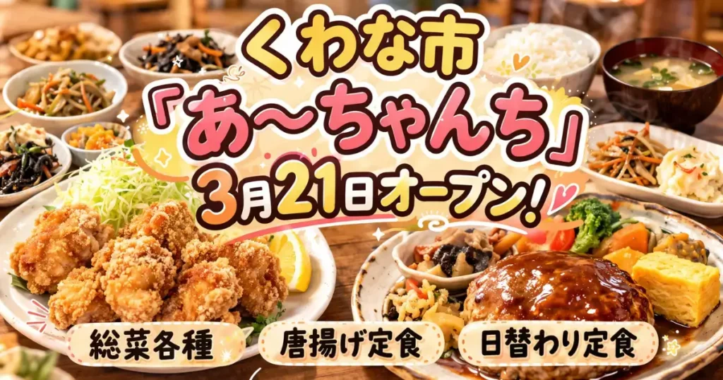 桑名市に『あ~ちゃんち』が2026年3月21日にオープンします! お惣菜で親しまれているお店が、新たに定食屋さんとしてオープンするとのことで、気になっている方も多い... スイーツ