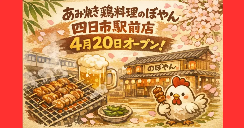 四日市駅前にのぼやんグループ6店舗目となる『あみ焼鶏料理のぼやん四日市駅前店』が2026年4月20日にオープンすることがわかりました! 松阪駅前に本店を構える「のぼや... グルメ