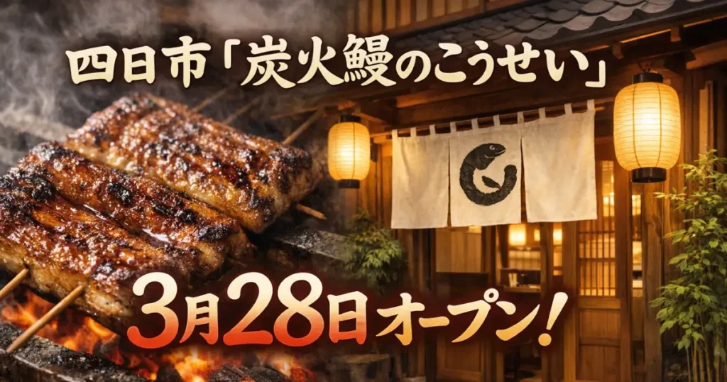 四日市別名に『炭火鰻のこうせい』が2026年3月28日オープンすることがわかりました! 場所は、『コーヒーハウスK&K お弁当まこと屋』の跡地。 『炭火鰻のこうせい』... グルメ