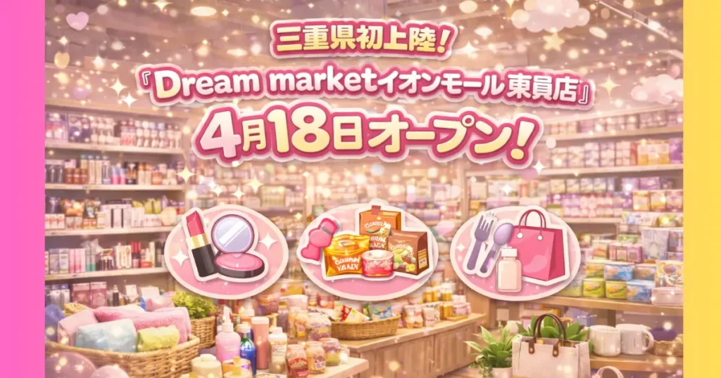 イオンモール東員に『Dream market(ドリームマーケット)』が、2026年4月18日(土)オープンします! 三重県初上陸となる『Dream market』は、話題の在庫レスキュー型アウ... おでかけスポット