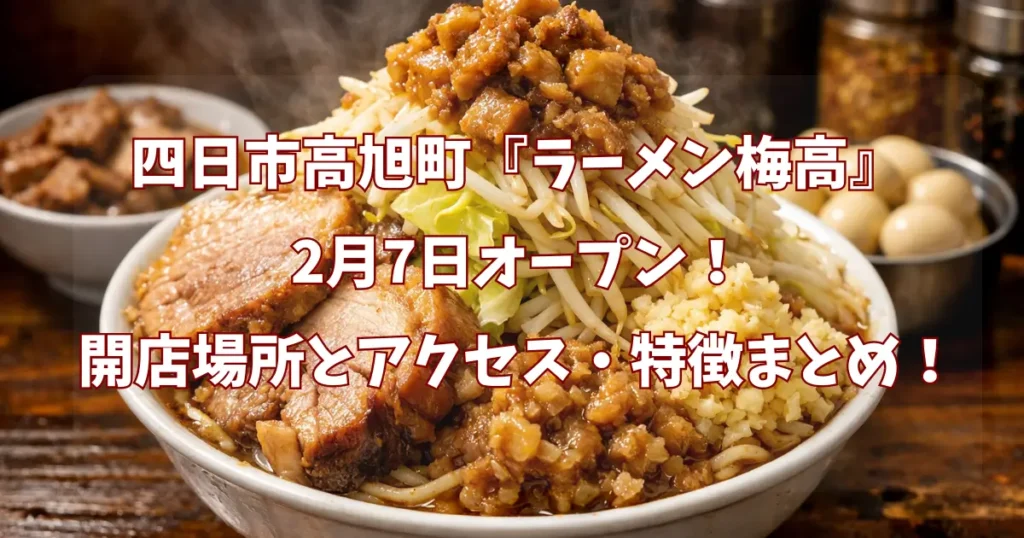 三重県四日市市高旭町に『ラーメン梅高』が、2026年2月7日グランドオープン! 開店場所は、ナマステヒマラヤ四日市店の跡地になります。 新しくオープンするラーメン店... -