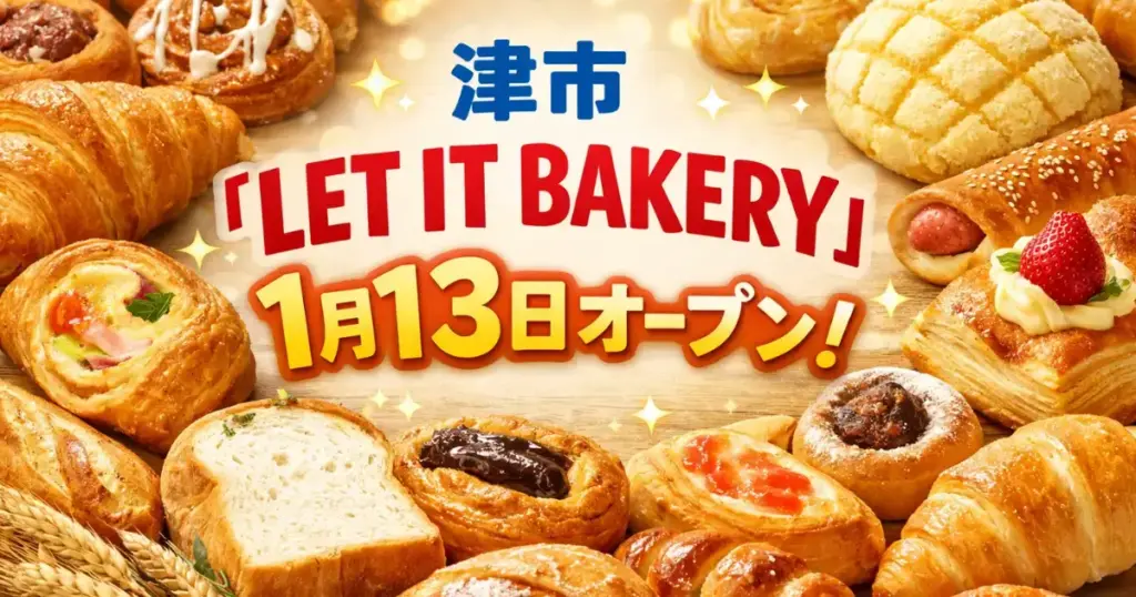 津市焼きたてパンの店 「LET IT BAKERY(レットイットベーカリー)」 が2026年1月13日(火)オープン! 津新町駅から徒歩わずか2分、セブン‑イレブンの隣という好立地で、通... -