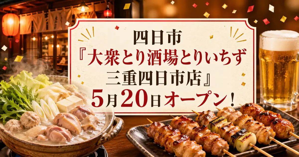 四日市諏訪栄町に『大衆とり酒場とりいちず三重四日市店』が、2026年5月20日にオープンします。
