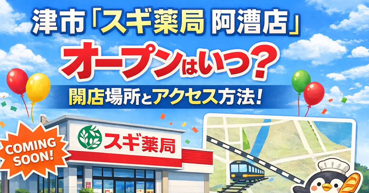 津市大倉に、『スギ薬局 阿漕店』が2026年1月29日にオープンすることがわかりました。